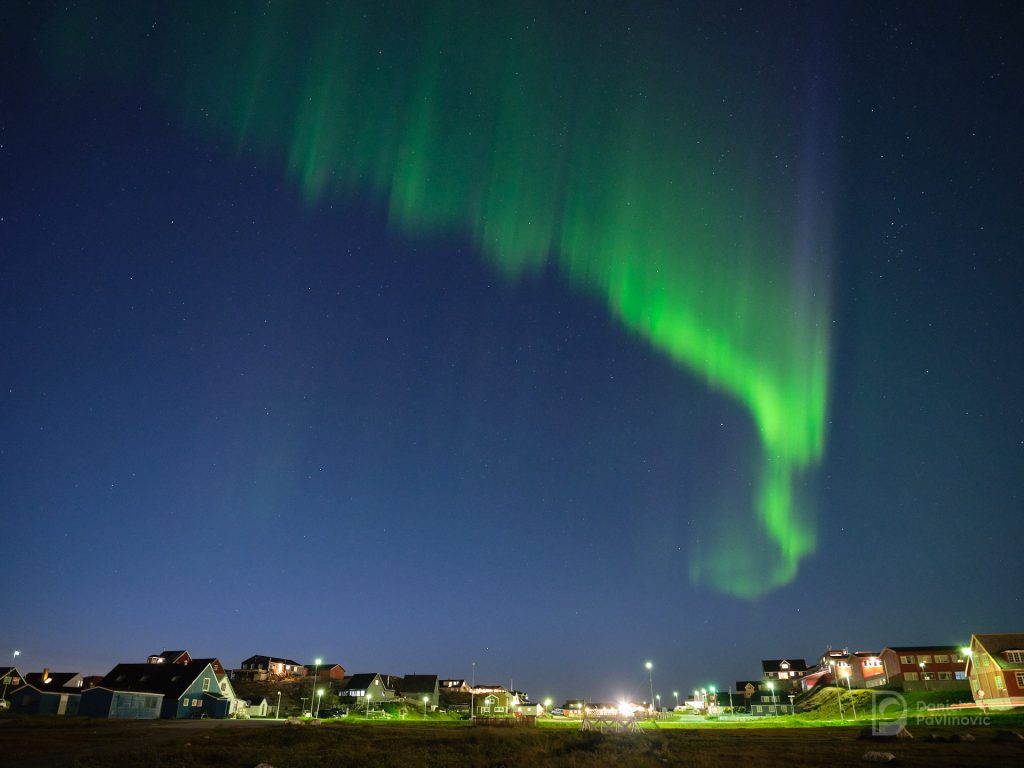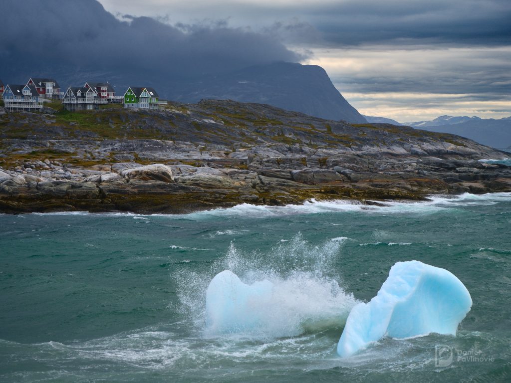 Pratili smo vrijeme i bilo je gotovo idealno sve do dana našeg dolaska (sve karte za letove smo morali uzeti par mjeseci ranije), kada se naglo pogoršalo. Letjeli smo s malim Bombardierom Q200 po noći iz Reykjavika tri i po sata do Nuuka, a vrlo turbulentno slijetanje po jakom vjetru bila je najava onoga što slijedi. Dva oblačna i hladna dana s kišom, uz temperaturu od 7°C i olujnim jugoistočnjakom u Nuuku iskoristili smo za šetnju gradom, posjetu muzejima i fotografiranje pokoje sante leda u valovitom moru ispred obale Nuuka.
